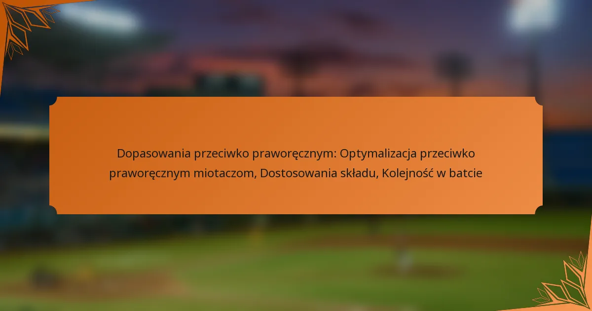 Optymalizacja składów przeciwko praworęcznym miotaczom jest kluczowa dla maksymalizacji wydajności ofensywnej w baseballu. Drużyny mogą poprawić swoje strategie, dostosowując kolejność batowania, wykorzystując przewagi platoonowe oraz dokładnie analizując statystyki graczy. Identyfikując zawodników, którzy radzą sobie w tych starciach, menedżerowie mogą podejmować świadome decyzje, które prowadzą do większego sukcesu na boisku.